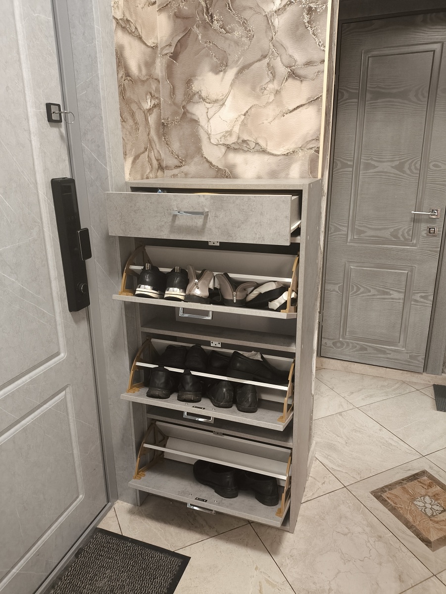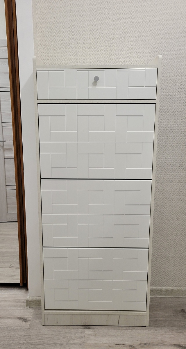 Обувница получилась отличная, вместительная и красивая! Заказывали по своим параметрам. Всё сделали на совесть. Собрали без проблем, очень довольны своим заказом.