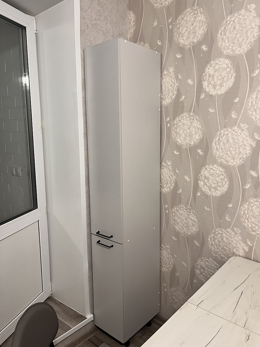 Отлично вписался на кухню, вмещает в себя много посуды, занимает мало места.