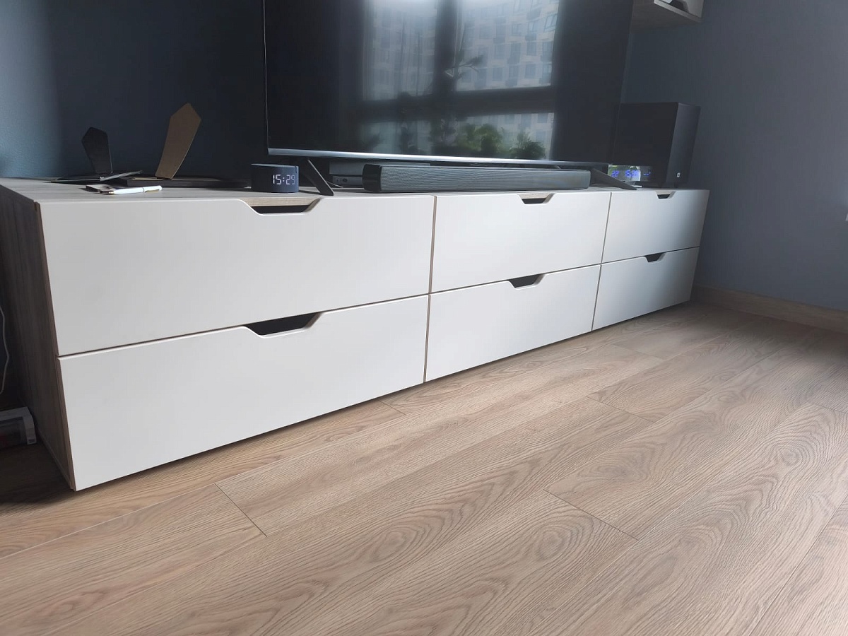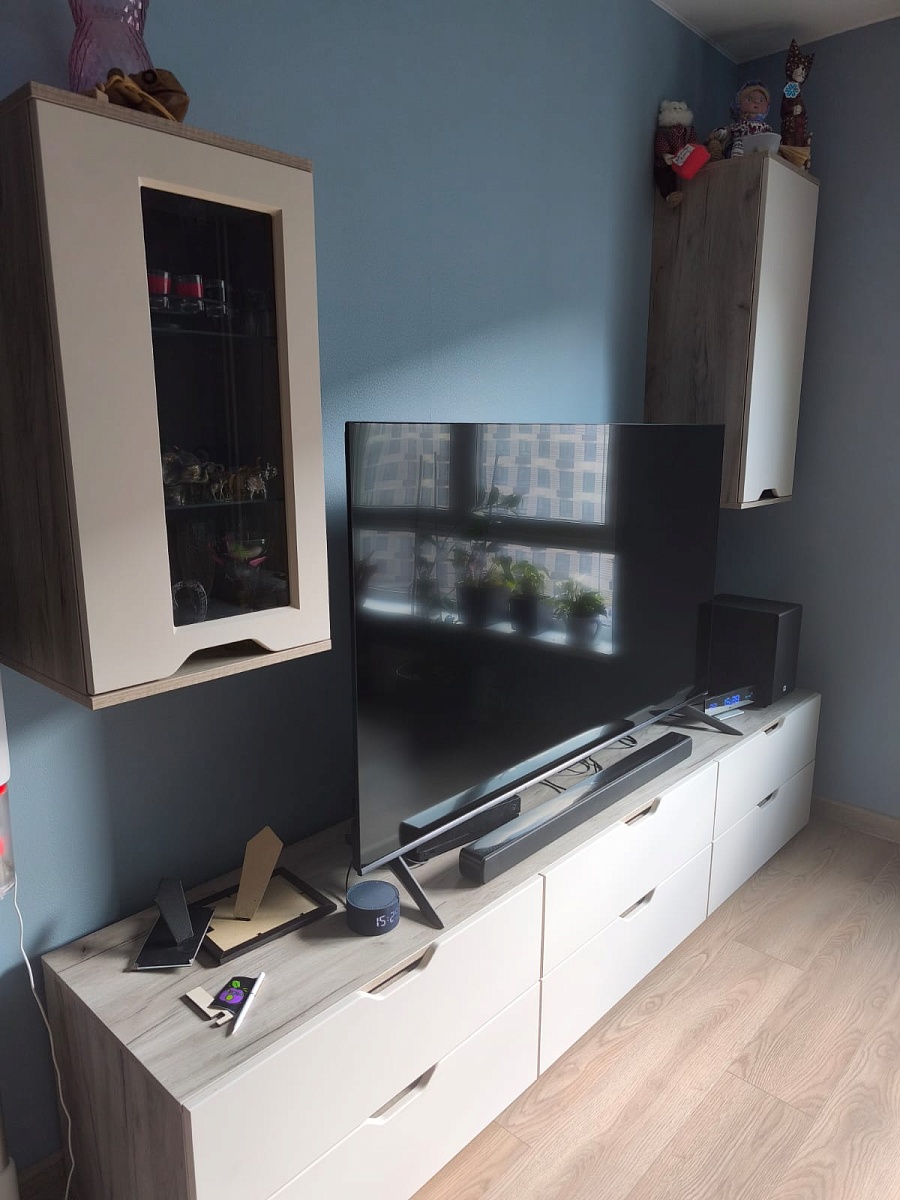 Красивая тумба для гостиной, собрали легко, исключение составили дверцы: при ширине тумбы 180 см, каждая дверца оказалась слишком тяжелой для мебельных петель, происходит перекос (опускание) свободного края дверцы. При ширине тумбы более стандартного рекомендуем увеличить количество секций до 4