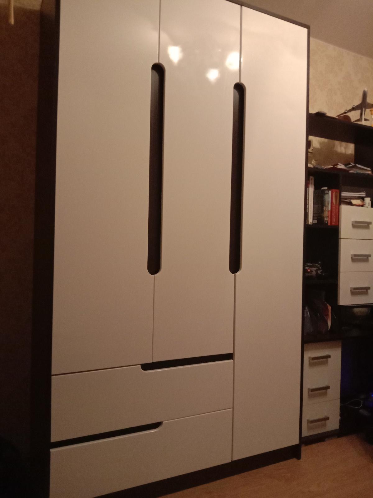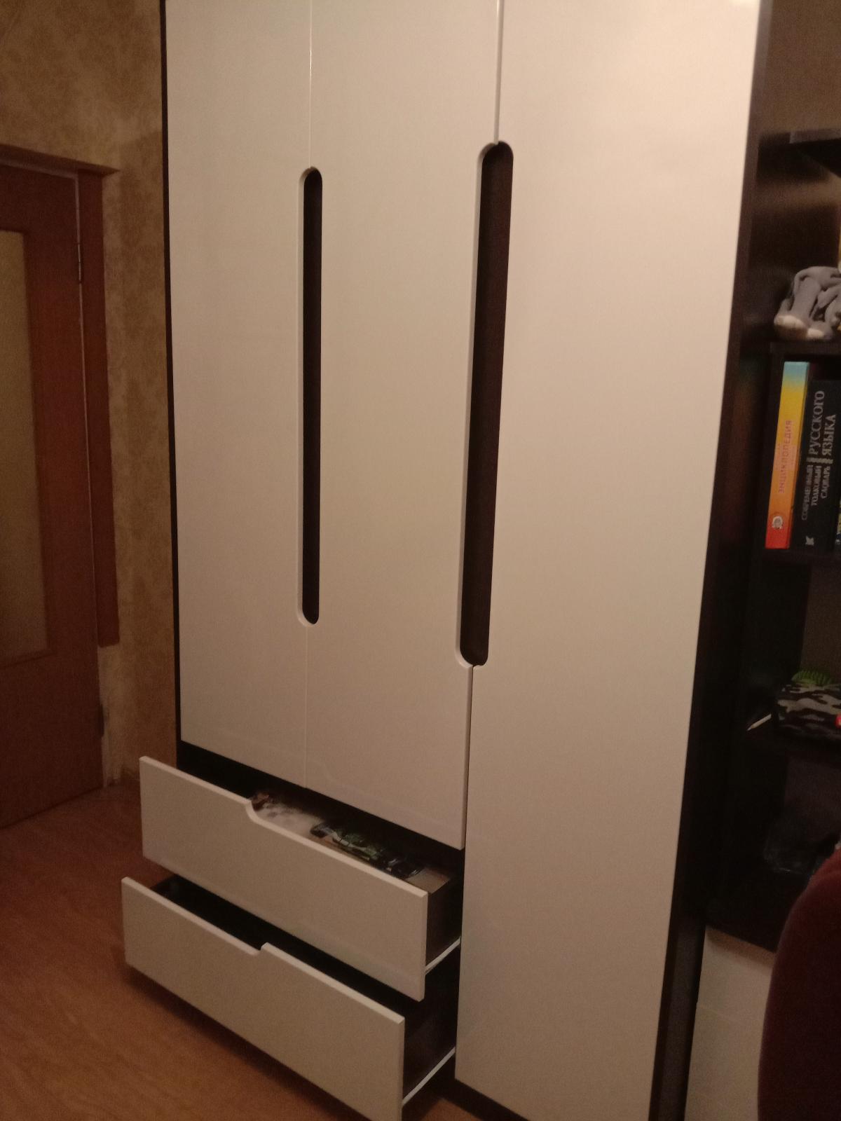 Заказ 00000450591. Заказали шкаф на балкон. Из всех просмотренных мной сайтов, здесь была самая оптимальная цена. Больше всего понравилось то, что не надо было вносить предоплату. Выбрали нужный размер, поскольку у нас достаточно высокий потолок, высоту выбрали 2600, выбрали нужный цвет. К оформлению заказа и доставке нареканий нет, все быстро, оперативно. При сборке, т.к. шкаф широкий, и развернуть его потом уже было нельзя, сборщик не вставил только 1/4 стенки (на фото видно), но в тех условиях, которые у нас были, это был лучший вариант, мы бы наверное сами вообще не смогли бы стенку прибить. Так что довольны. После этого еще потом заказали 2 дивана, все так же без проблем, и ткань подобрали, потом передумали и выбрали новый цвет, все без проблем, без брака. Еще и в подарок бонусом тумбу получили, было приятно.