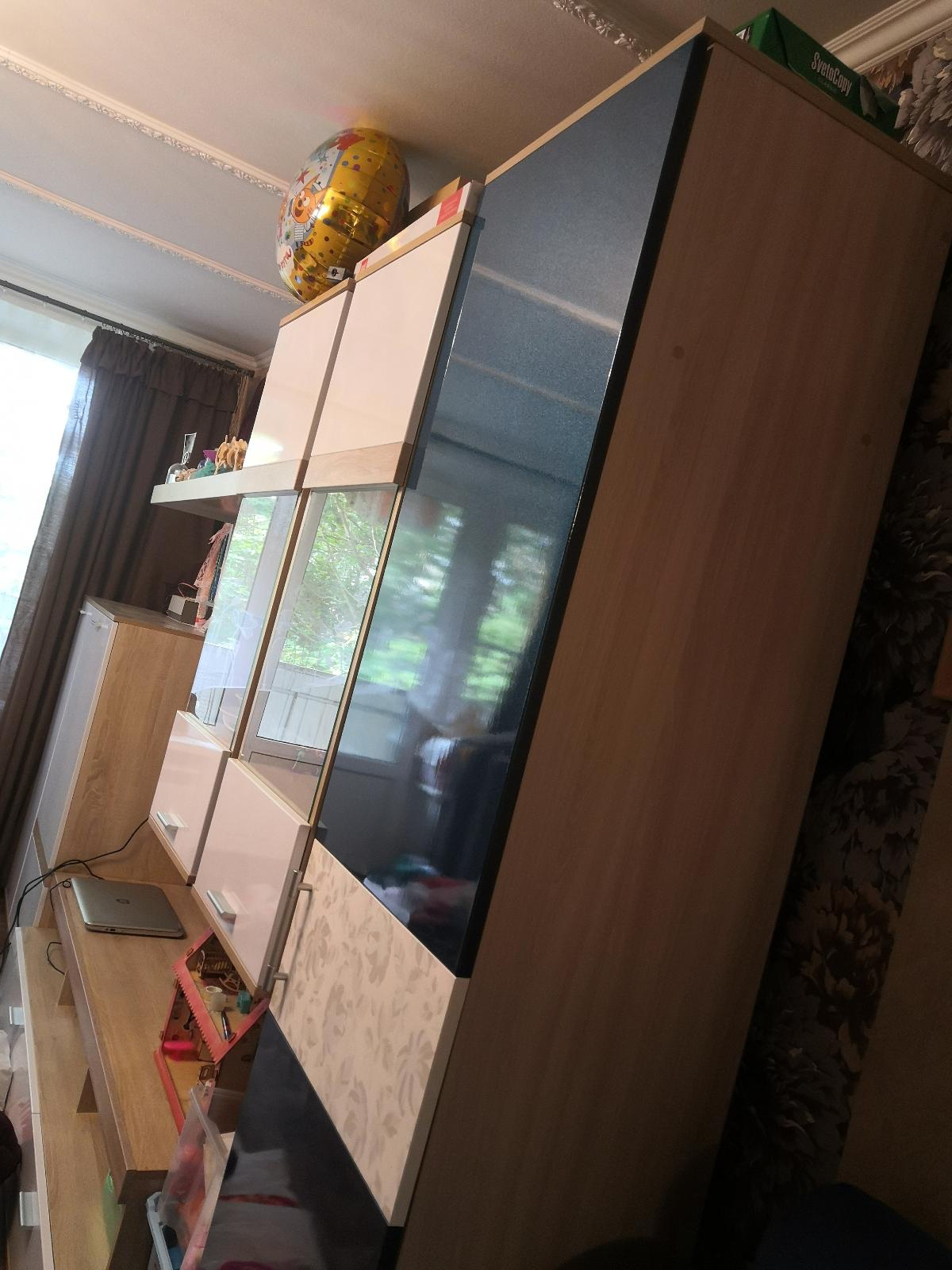 Преобрели шкаф Комфорт 6 BMS в январе 2020г. (заказ 00000338610 от 10.01.2020). Мне давно приглянулась такая модель, которая сочетает в себе распашной шкаф и шкаф-купе, присматривала в магазинах, но муж нашёл кучу недостатков: щели между створками, шумы при открывании и т.д., а самый главный конечно цена. На сайте BestMebelShop нашла такой шкаф и влюбилась в него, да ещё с возможностью выбора нужных размеров! Не смогла не заказать по такой цене, доставка бесплатная, а собирал муж сам. Инструкции по сборке нет, поэтому пришлось попыхтеть, а доводили до ума самостоятельно: муж купил самоклеящиеся мягкие полоски на дверки-купе, с ними дверки открываются бесшумно, ну и спрятались небольшие щели. При выборе данной модели нужно учесть, что распашные дверки в центре, а также выдвижные ящики открываются только при полностью закрытых боковых дверках-купе, нужно иметь это ввиду если это может создать вам неудобства. В нашем шкафу мы выбрали компановку с выдвижной штангой по центру и полками по бокам. Из недостатков я бы выделила то, что на каждой детали шкафа на лицевой стороне наклеены заводские наклейки, которые очень тяжело снимаются. Я решила проблему с помощью фена и жидкости для снятия лака. Вместе с этим шкафом приобрели стенку Макарена с такой же фурнитурой и в той же цветовой гамме. По моему получилось неплохо. В общем шкаф шикарный, всем рекомендую!👍