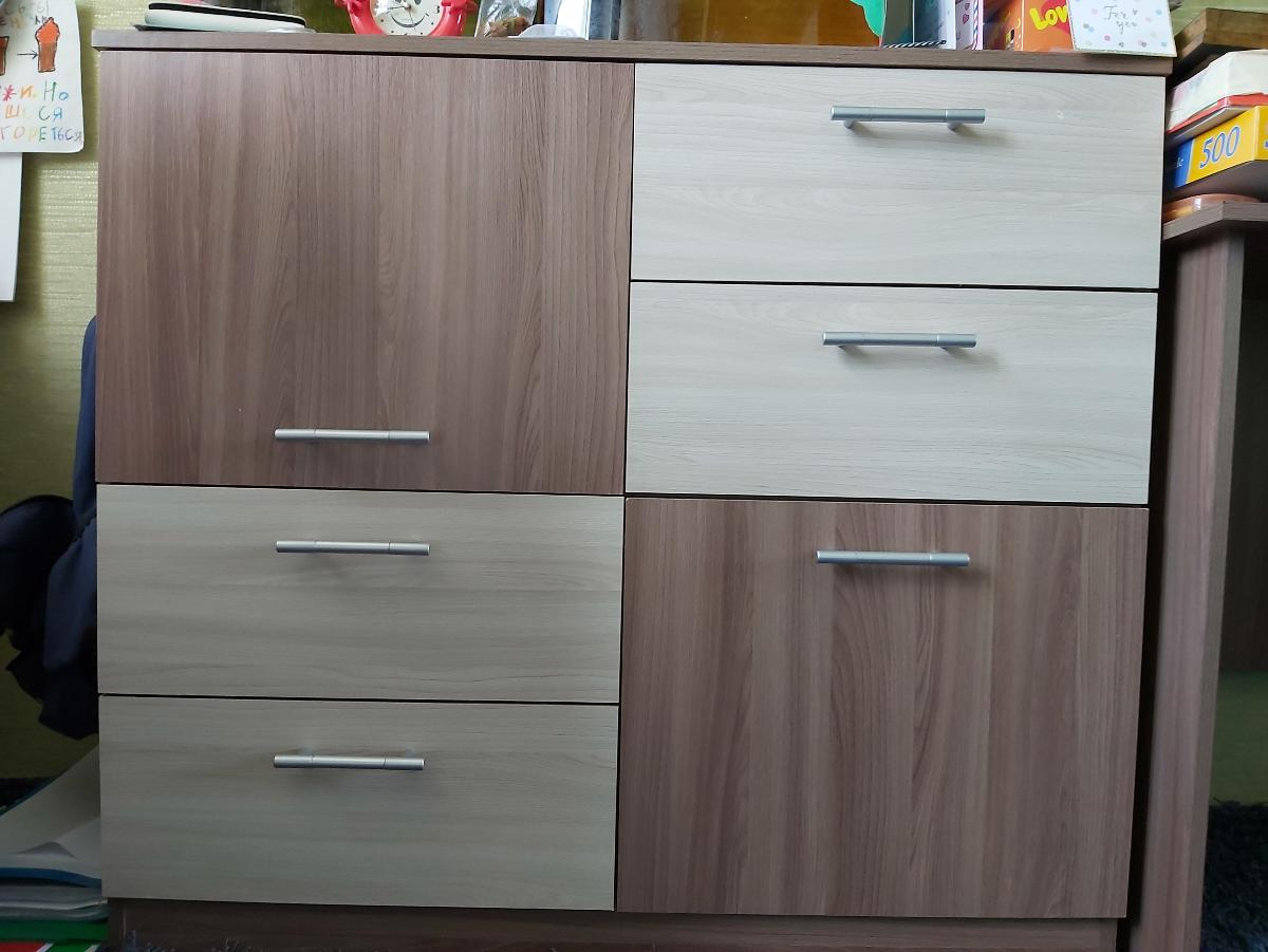 Заказала комод в детскую. Очень понравилась возможность выбора: свои размеры, цвет фасадов, разные ручки - пожалуйста! В итоге скомбинировала светлый и темный ясень - получилось красиво! Все привезли вовремя и я стала думать, кто же будет собирать мой комод? Денег лишних, понятно, нет. Развернула детали, а они все размечены, дырки просверлены, инструкция с картинками! В общем, собрала сама, за это отдельное спасибо!