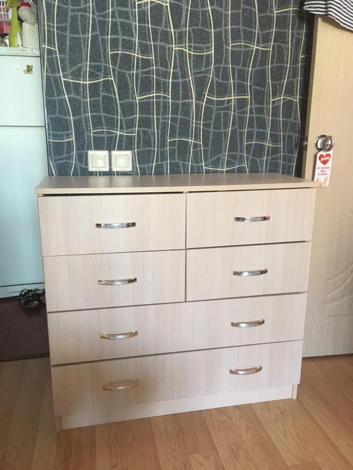 Выбирали тумбочку прикроватный,чтоб по цвету была одинаковой с кроватями.Выбрали Лотос ВМС.Цвет вишня.Изготовили очень быстро.Сделано очень хорошо.Понравилось что под направляющие сделана разметка,не нужно самому вымерять.На каждую деталь наклеена бумажка с названием.Трудностей со сборкой не возникло.Бумажки с названием,на мой взгляд можно было по размеру и поменьше наклеить.Доставили быстро.