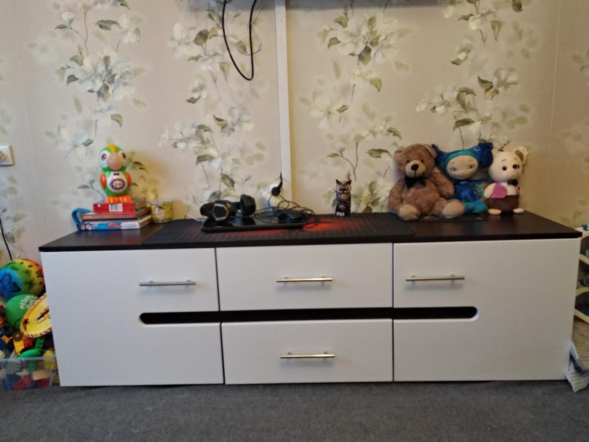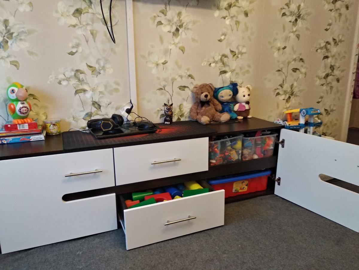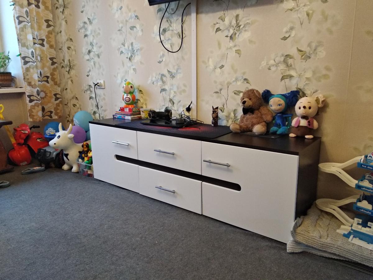 Вообще начну с огромного спасибо этому магазину!!!  Заказала данную тумбу под игрушки ребенку,что бы игрушки не были по всему залу ,в разных углах. Очень понравилось,что здесь можно заказать мебель по своим замерам(мы заказали 180 см ). С 13 января и по сей день ребёнок активно ею пользуется,хлопает дверьми и ящиками ,пока всё работает на ура и ничего не отвалилось,поэтому за качество вам 5). Доставка в срок,тоже -5) собирали сами.