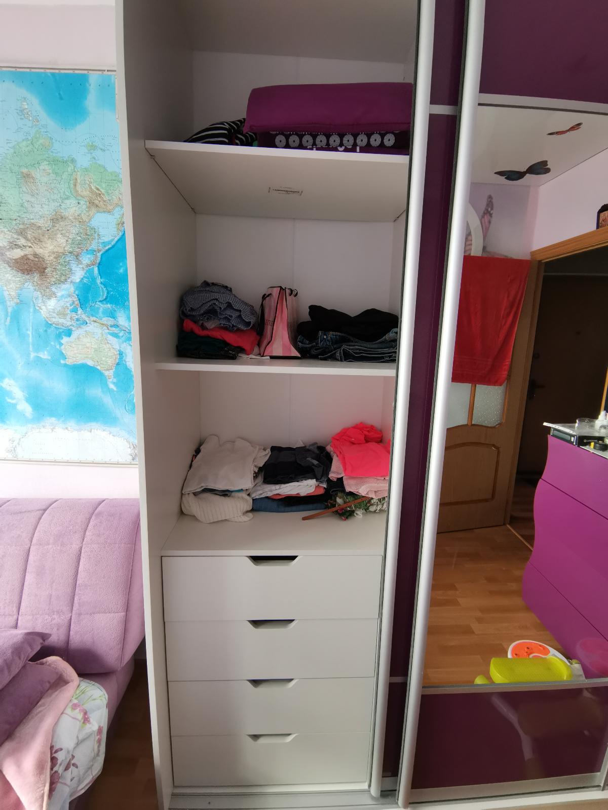 Заказ: 340410. Заказывал 2 таких шкафа, отличная цена с учетом скидки и возможность подогнать размеры и цветовую гамму для себя. Привезли быстро, качество мебели, за свои деньги, отличное. Собирается все легко самостоятельно (хоть и нет пошаговой инструкции). Из недостатков - наклейки на фасадных элементах мебели было сложно отдирать.