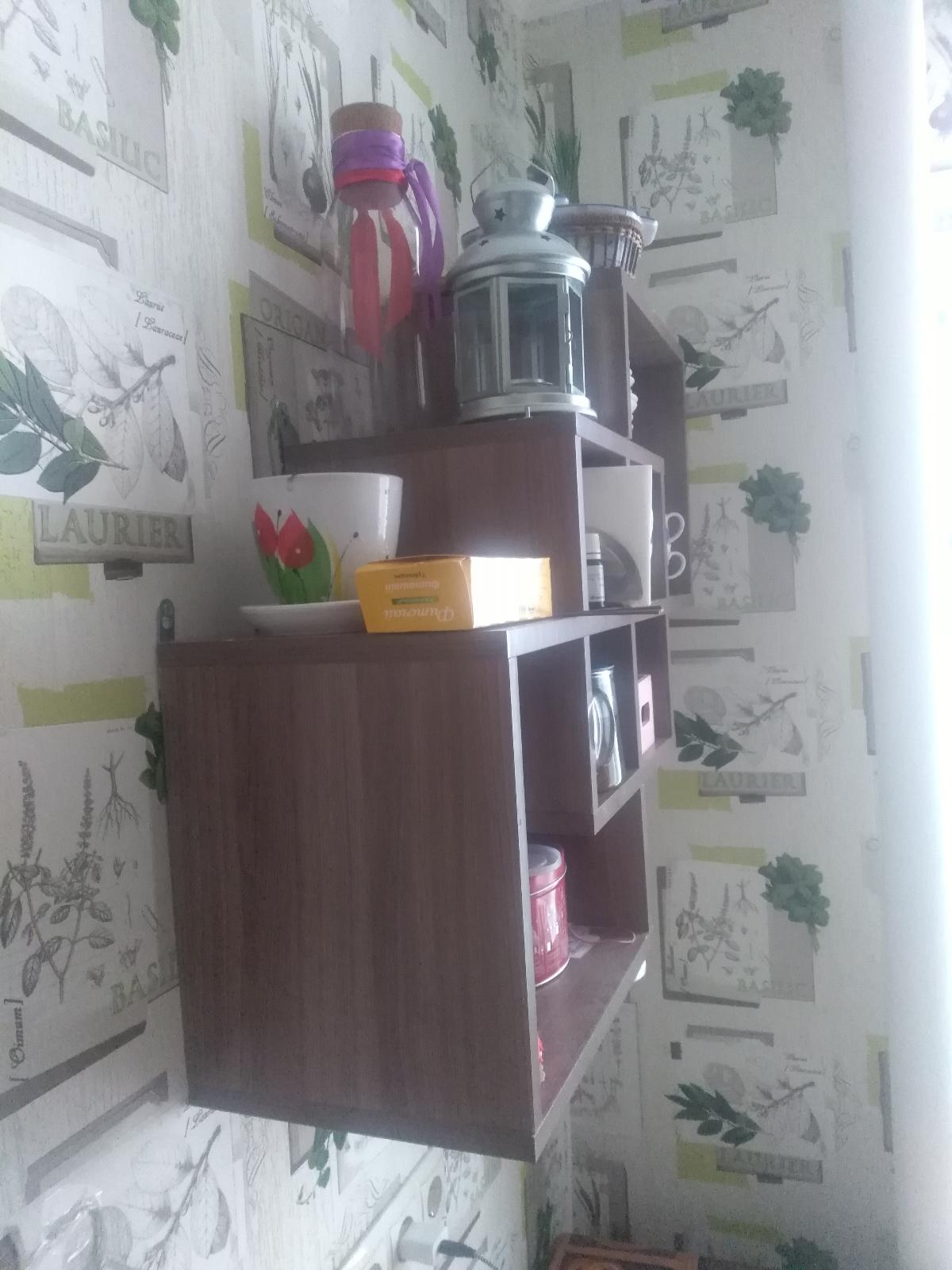 Очень понравилось, что полка есть в нескольких размерах. Брала для маленькой кухни самый маленький размер. Все что раньше мешалось на столе идеально поместилось на полку. Большую глубину считаю плюсом, коробка печенья идеально поместилось.