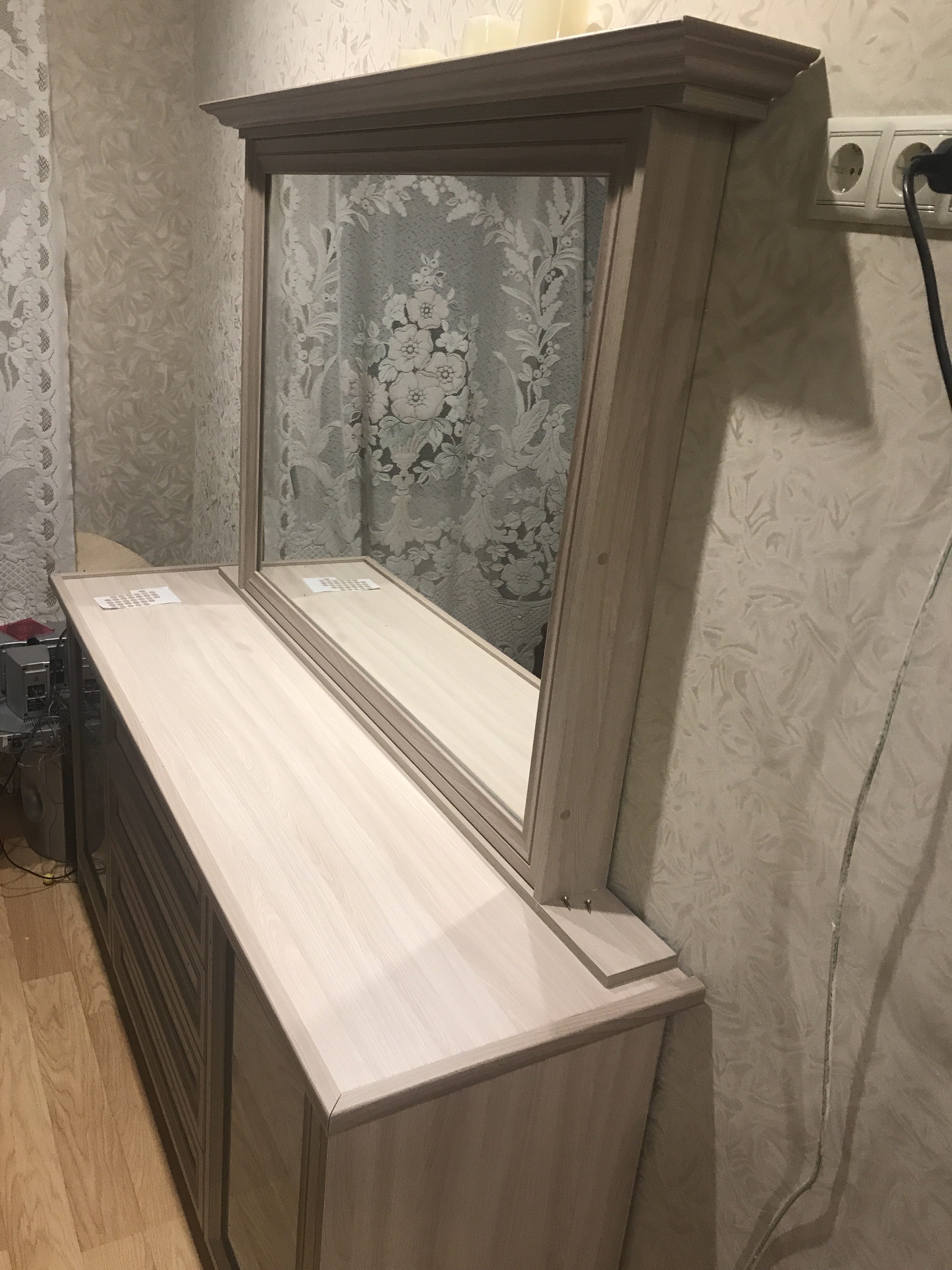 Комод-моя мечта❤️Заказала цвет,который мне был нужен и габариты во вторник,а в пятницу уже привезли!!!Я в восторге!!!Шикарный,вместительный,я очень довольна!!!Единственное-ручки забыли,но обещали скоро исправить)Доставка (Спасибо Максиму и Павлу)была быстрой,проверила стекла,зеркало...Сборщик (Иван)так же собрал быстро и аккуратно!!!Большое спасибо и всем рекомендую!!!