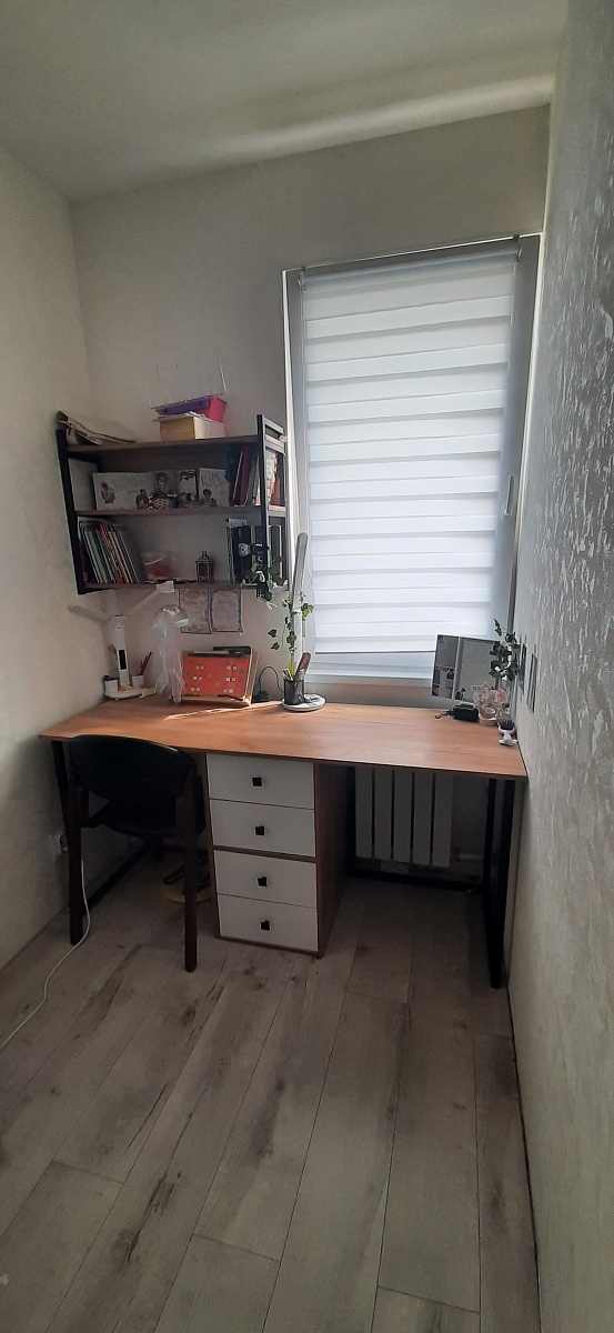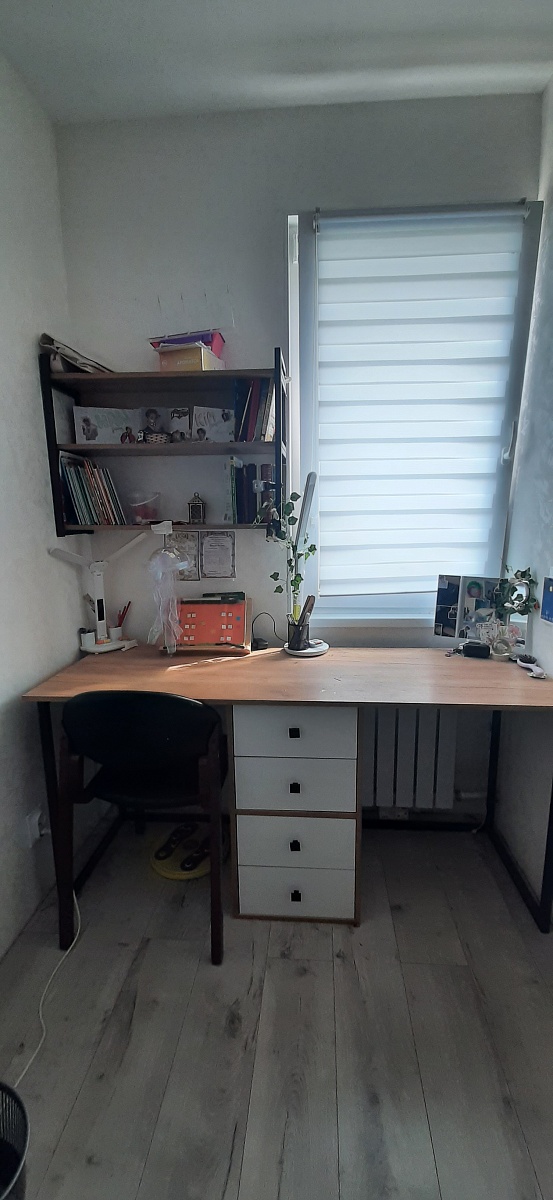 Приобрели письменный стол на двоих детей.  Очень достойная модель,  металлический стильный каркас. Был дефыект на фасаде ящика, быстро все заменили