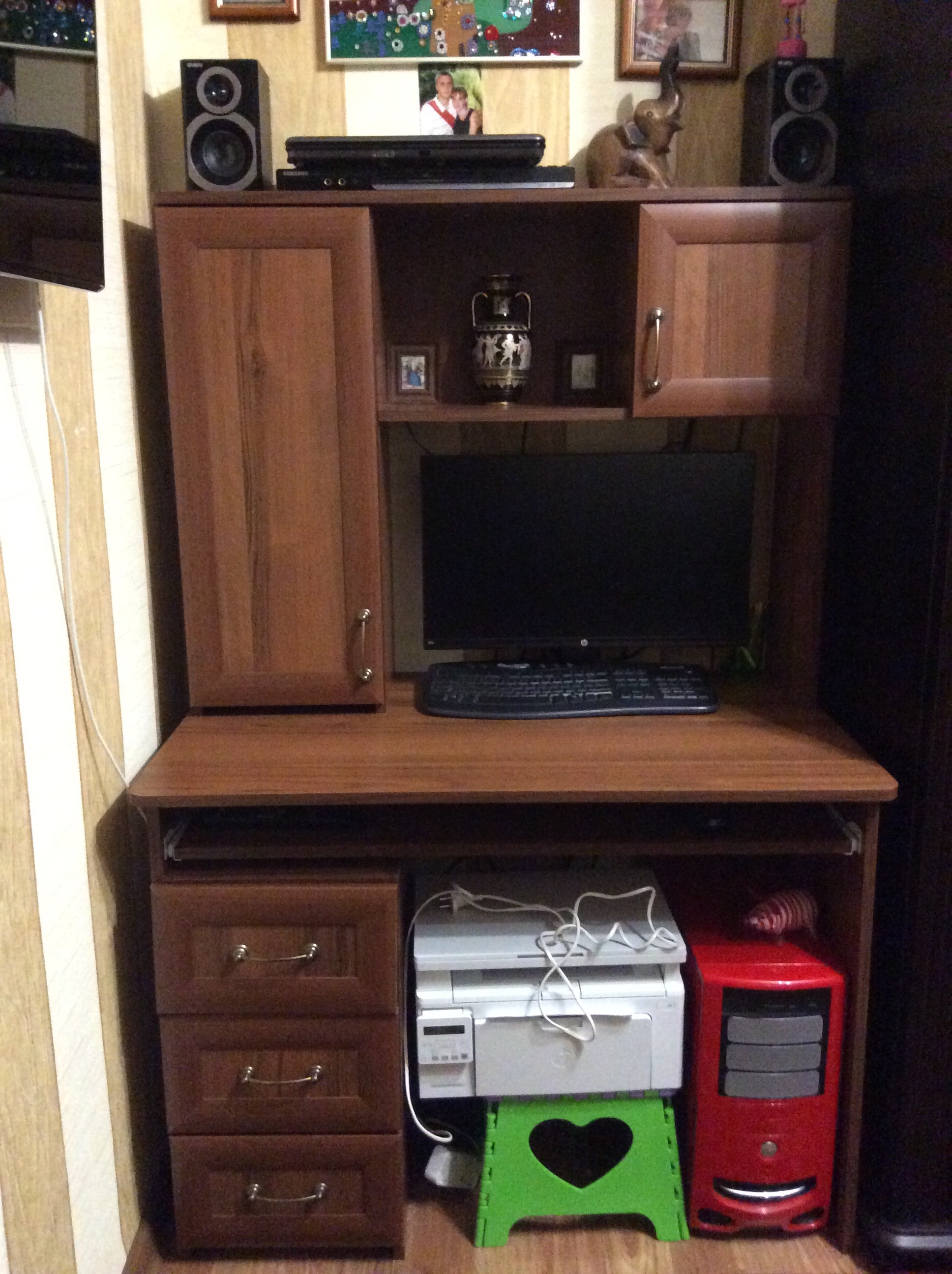 Заказал компьютерный стол домой, внешне очень прекрасно вписался в интерьер квартиры (так как вся основная мебель была куплена в БМШ, то оттенок цветов друг от друга не отличался и гармонировал с другими изделиями). Компьютерный стол очень удобный - есть все необходимое: и ящики для хранение документов, бумаги, канцелярии и большая рабочая зона (можно использовать как письменный стол), и специальная невидимая внизу полочка под небольшой принтер, и выдвижная подставка для мышки и клавиатуры. Для особо "секретных" документов есть отделение, закрывающееся на замок. Покупкой очень доволен - служит верой и правдой.