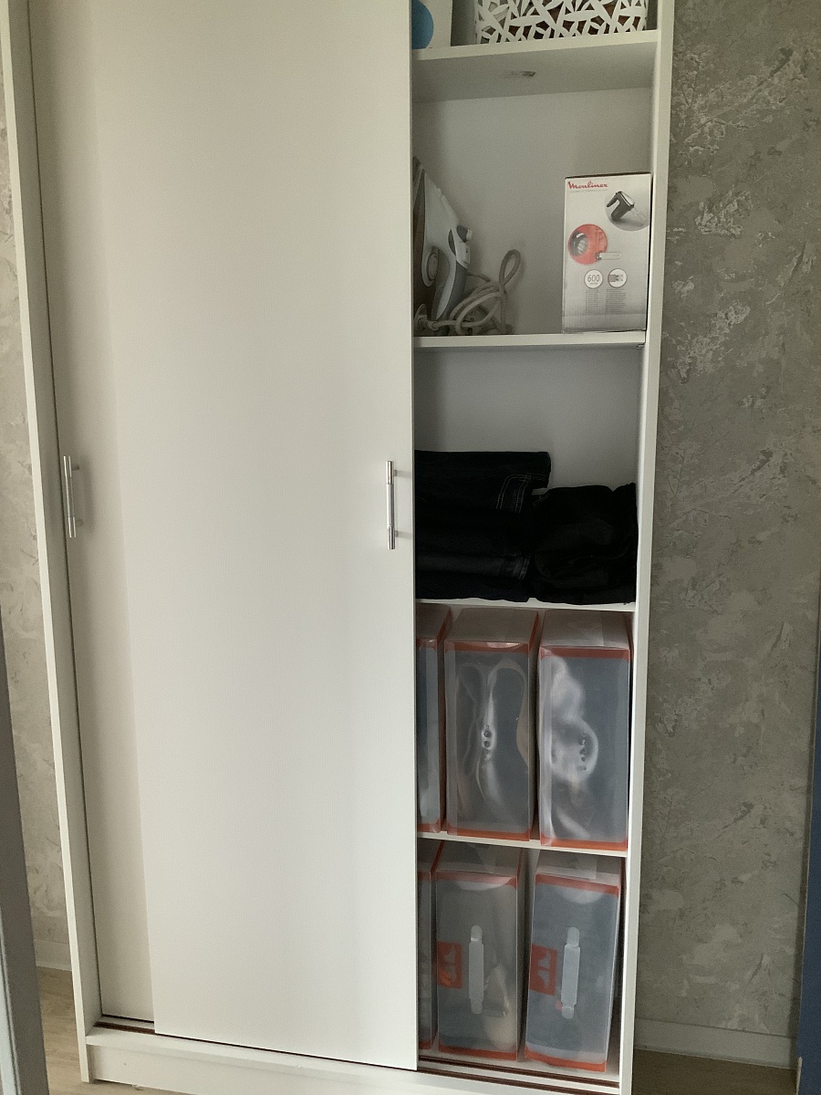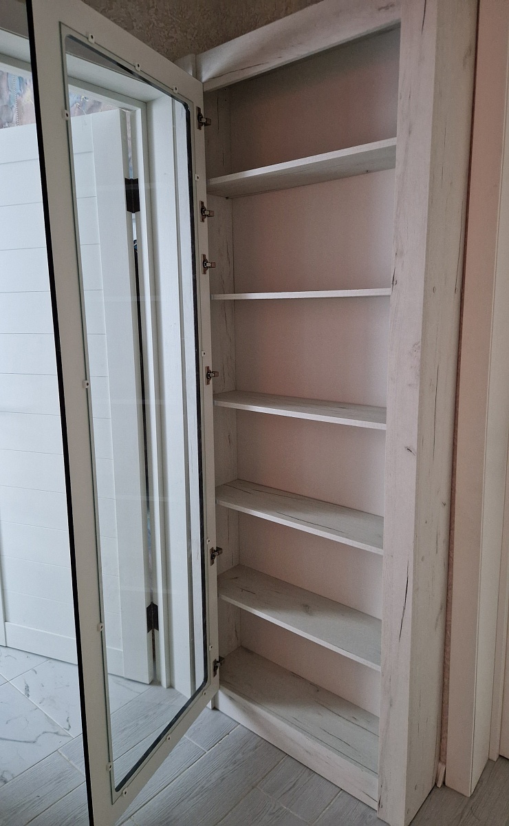 Стеллаж хоть и называется торговый, но обратила на него внимание для использования дома в качестве книжного шкафа. Его несомненный плюс это толщина, у меня таких шкафа два, один 20 см а второй 23 см сделанные по своим размерам. Они оба встали в незаметные ниши которыми все равно не пользуюсь, толщины 20 хватает ровно на одну обычную книгу. Вся библиотека как на ладони. Второй плюс это дверца, лично я не люблю когда книги хранятся на полках и собирают пыль. Так что закрытый шкаф со стеклом вариант идеальный. Цвет дуб крафт белый, фасад глянец черный. Смотрится красиво. Так же под заказ была добавлена дополнительная полка внутрь, конструктор в магазине самостоятельно раскидал поровну высоту полок, так же удобно, нет сверху больших бесполезных пространств. Возможно если добавить еще одну полку тоже будет хорошо, надо считать. На фото шкаф 23 см.
