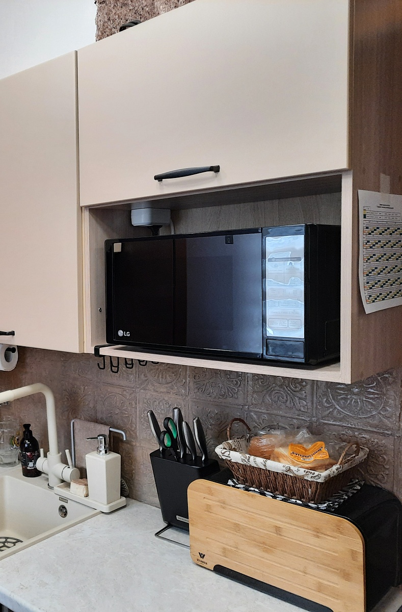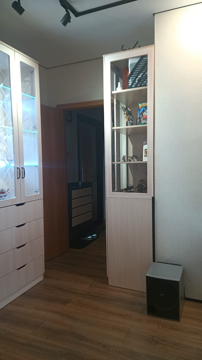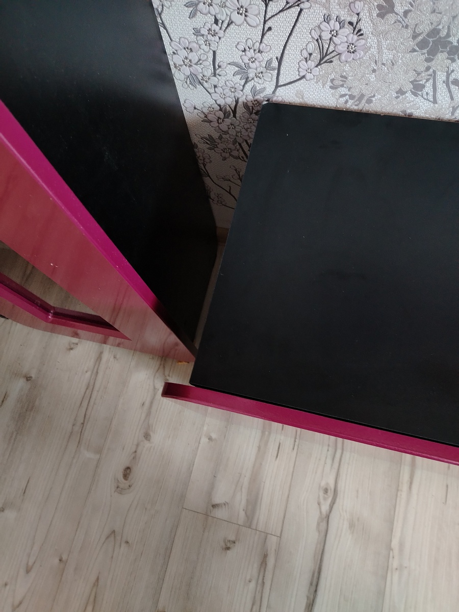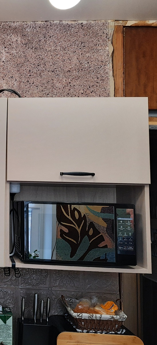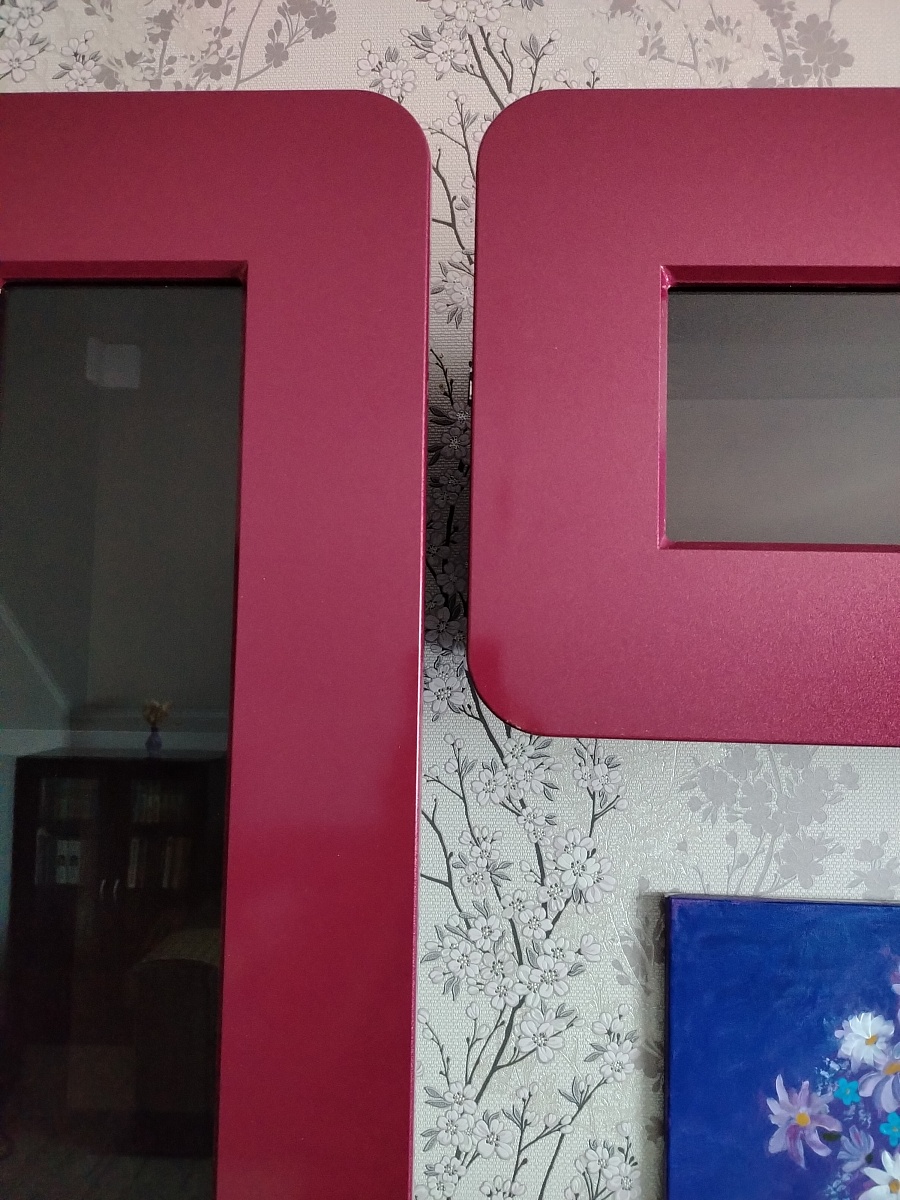 Очень необычная мебель:шкафчики между собой не соединяются, дверцы по всей высоте выступают за корпус и это нужно учитывать при размещении. Мы просто влюбились в эту стенку, очень вкусный цвет фасадов - брусничный металлик, что при чёрных корпусах выглядит эффектно.