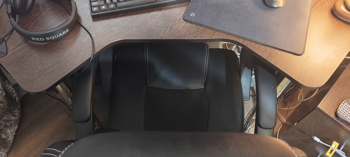 Стол удобный! Вмещает 2 монитора 21 с небольшим совершенно спокойно(размер 1100х1100) . Удобный вырез для залечь под стол и ножки положить(фото 3-4) .Подставка под монитор крайне удобная, нет никаких перемычек, спокойно можно присоединять провода ( фото 2). Кресло можно задвинуть. Тумба на колесах , можно закатить под стол , можно рядом. У меня рядом , еще дополнительное рабочее пространство. Размер можно заказать , у меня небольшая комната, влезло до сантиметра. Сборка легкая , нет сложных и громоздких элементов.