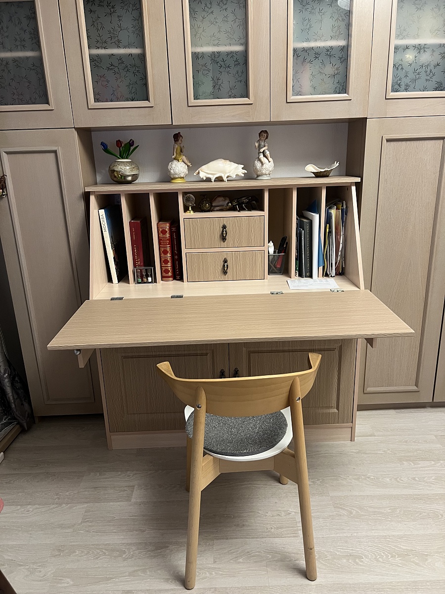 Искали шкаф в уже ранее купленный гарнитур. Нужен был в таком же стиле, без стекла. Но, увы, где бы ни смотрели - везде было снято с производства.БестМебель превзошла все ожидания! Очень довольны, смогли сделать шкаф с такой же фрезеровкой, по нужным размерам, аналогичные цвета. Встал как будто из той же серии! Изготовили быстро, доставили тоже. Сборка недолгая. Спасибо большое!На фото слева.