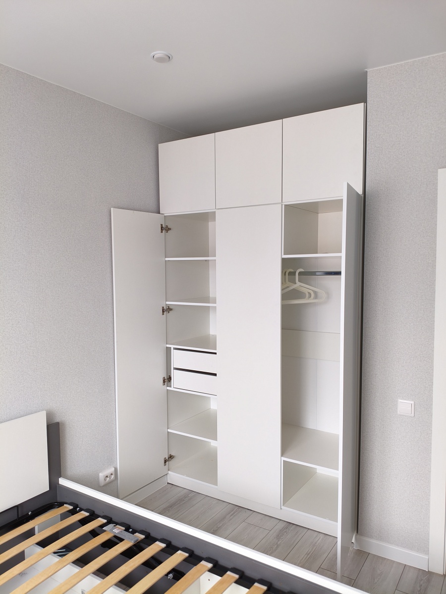 Заказ №1133213. Заказ был по индивидуальным размерам. Подтвердили на следующий день. Быстро изготовили и доставили, буквально в течении нескольких дней. Всё пришло хорошо упаковано, без изъянов. Сборку заказывали у партнёров, через сайт. Шкафом довольны, очень вместительный, смотрится отлично. Качество супер.
