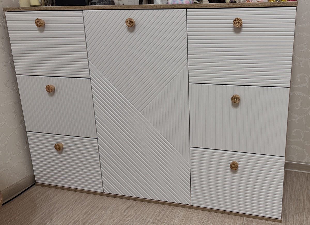 Номер заказа 1129867.Больше года искала себе комод с адекватным соотношением цена/качество. И, наверное, ещё бы долго искала, если бы подруга не посоветовала мне BestMebelShop, в котором они покупали большое количество мебели в новую квартиру.Что я могу сказать? Мои ожидания оправдались на все 100, очень довольна качеством комода, но больше всего понравилась возможность сделать заказ под индивидуальные размеры, а также самой выбрать цвет корпуса и фасадов.От сборки отказалась, сами собирали, это оказалось совсем даже не сложно, вдвоем справились! В комплекте к комоду были ножки, но их не стали устанавливать, потому что кот будет все свои игрушки под него таскать, а нам потом ползать и доставать. Комод очень аккуратный, красивый, потрясающе вписался в цветовое решение комнаты. Единственное, что запах не ушел пока, который чувствуется при открытии ящиков, но это у любой новой мебели такое.